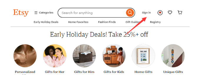 点击右上角头像,选择“Sell on Etsy”。