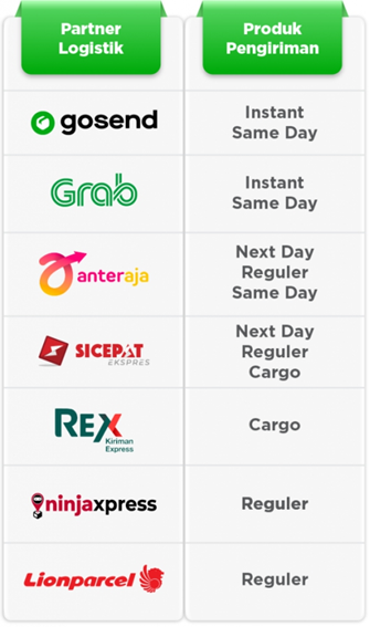 Tokopedia发货物流公司如下: